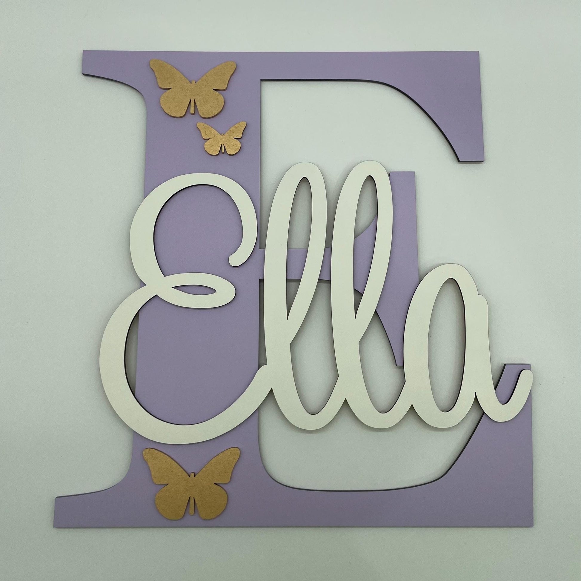 A beautifully painted wooden letter personalised with any name and decorated with small butterflies